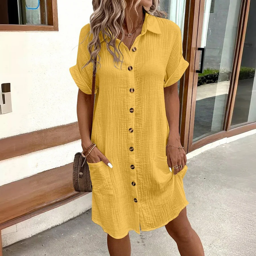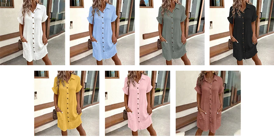 Migliora facilmente il tuo stile con il nostro abito chemisier. Che tu stia uscendo in spiaggia o intraprendendo un'avventura in crociera, questo vestito ti farà apparire al meglio.