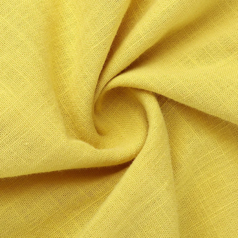 Tessuto 100% cotone e lino, naturale e sano, antibatterico e confortevole. Il tessuto è morbido e leggero, traspirante e ti mantiene fresco tutto il giorno. È la scelta migliore per l'abbigliamento estivo.