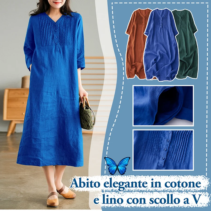 Rinnova il tuo guardaroba con il nostro abito casual in cotone e lino, un capo versatile ed elegante, perfetto per ogni occasione.