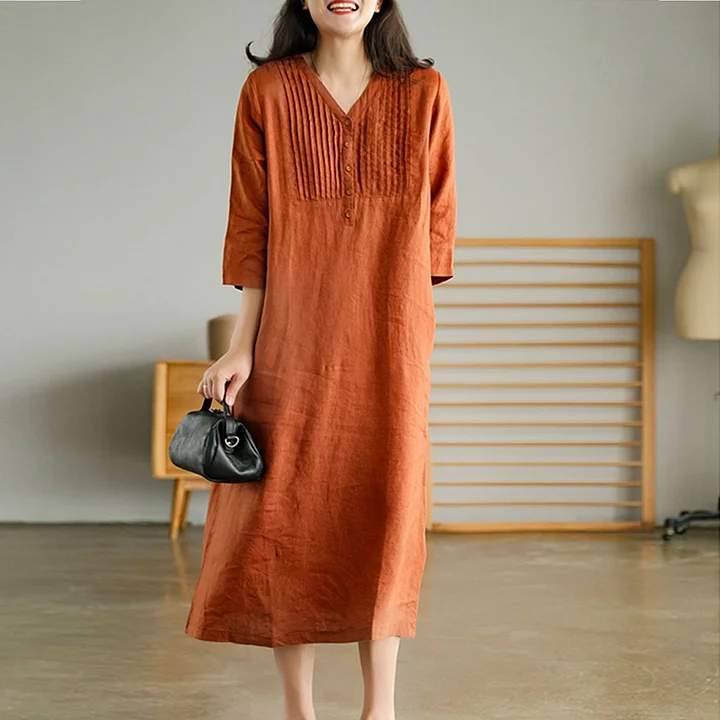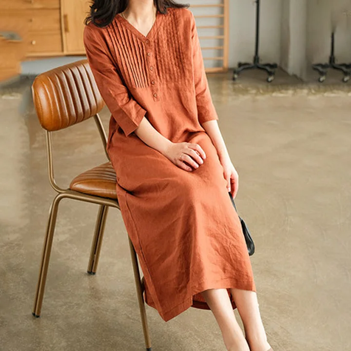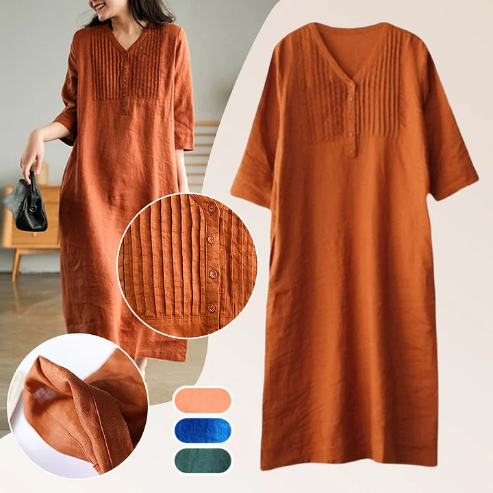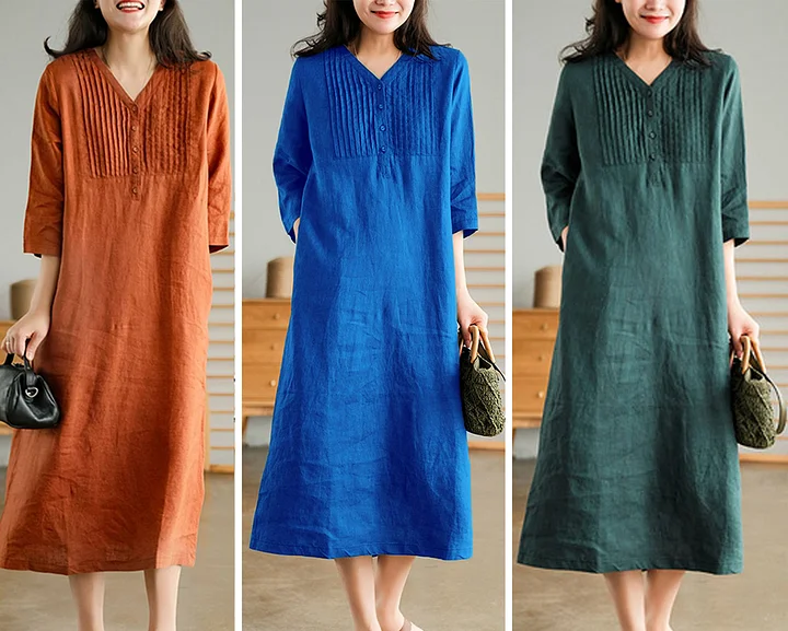 Questo vestito in cotone e lino è sia casual che formale, e può essere indossato facilmente per gli spostamenti quotidiani, per uscire con gli amici o per andare in vacanza al mare. Goditi la calda estate. 🌞