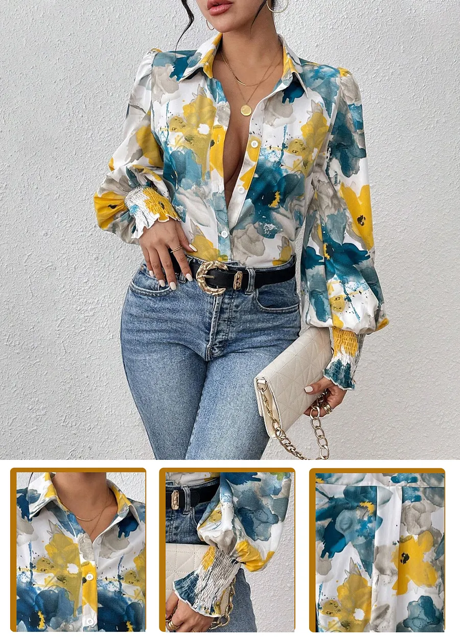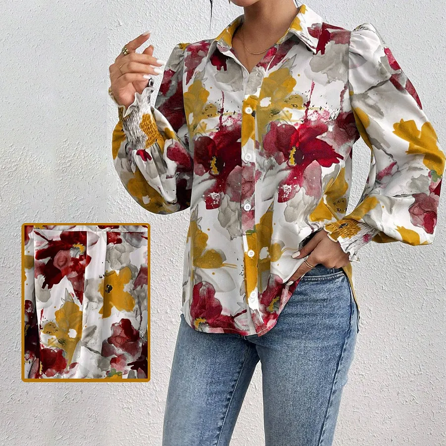 Questa camicia da donna con risvolto, ampia e sofisticata, offre ampia libertà di movimento, è comoda e non attillata, ed è adatta alla maggior parte delle donne, esaltandone perfettamente il fascino femminile.