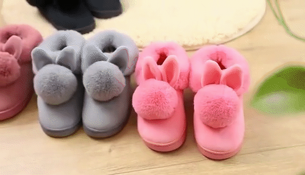 La forma di coniglio alla moda e carina è lo splendido scenario in inverno.È realizzato con tessuti di peluche di alta qualità con soffice peluche all'interno per mantenere la temperatura calda e costante e non ha paura del freddo intenso in inverno. Comoda ed elegante allo stesso tempo, può essere utilizzata in casa e fuori, è una scarpa in cotone irrinunciabile in inverno.