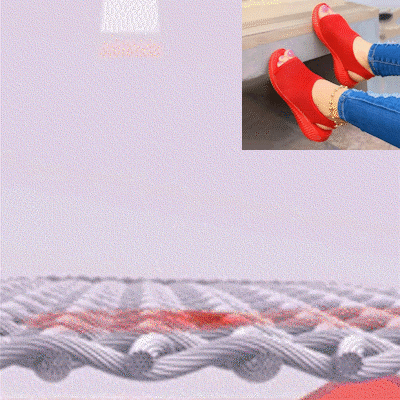 il materiale della suola è flessibile ed elastico e la forma della zeppa è ergonomica, che può alleviare bene la pressione sul piede e anche l'effetto di assorbimento degli urti è migliore.