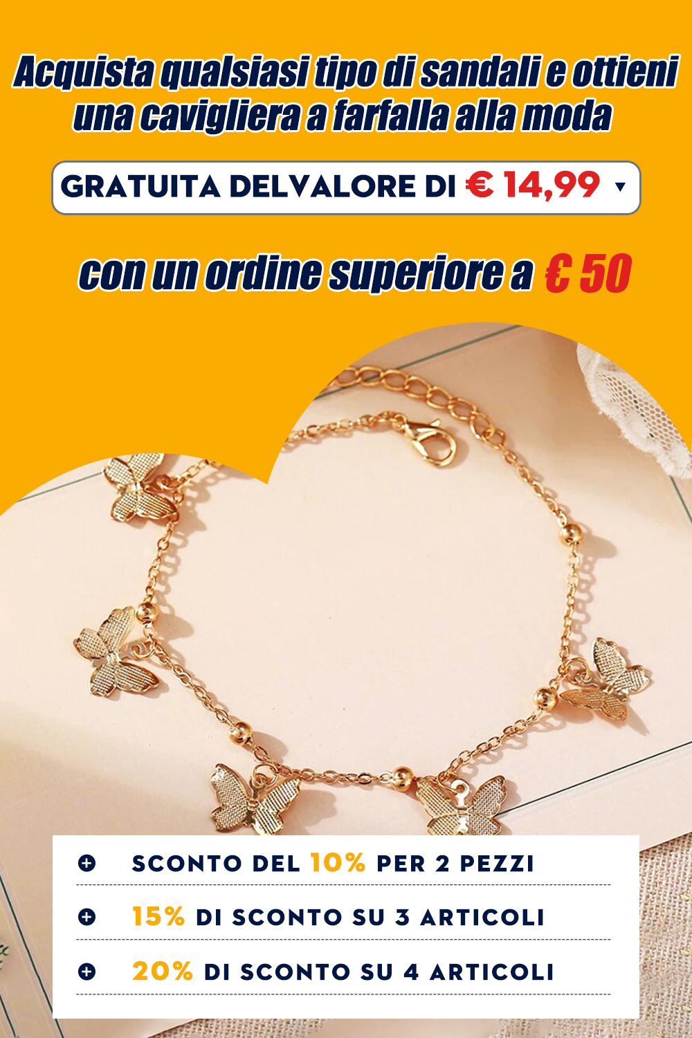 ❤ Per ordini superiori a 50€, verrà spedita con l'ordine una cavigliera regalo del valore di 14,99!