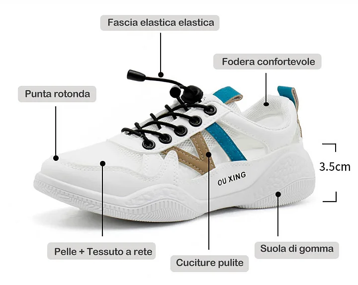 Le nostre sneaker traspiranti e antiscivolo sono dotate di una comoda punta rotonda, lacci elastici facili da indossare e da togliere e cuciture precise per una maggiore resistenza.