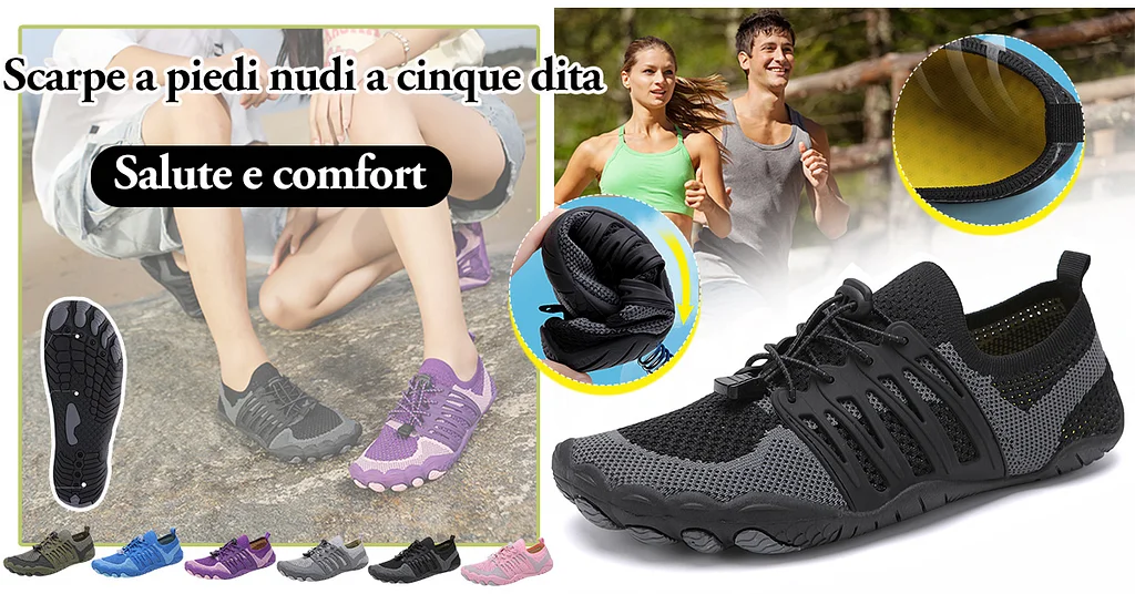 Rinuncia alle scarpe tradizionali! Indossa le nostre scarpe barefoot, senti profondamente il tocco del terreno e sperimenta la libertà di correre a piedi nudi senza rinunciare alla moda.