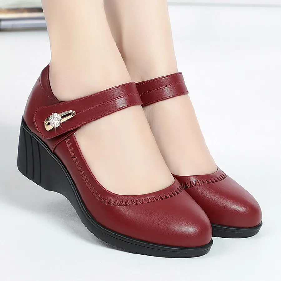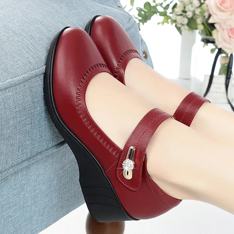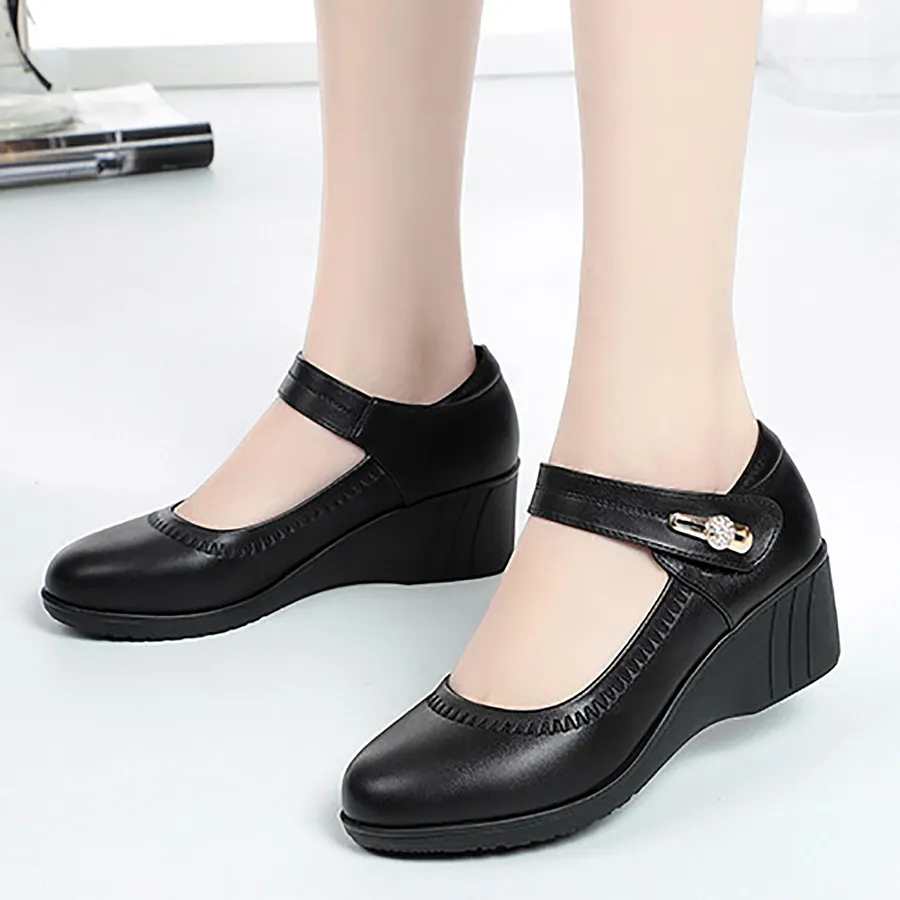 Queste scarpe con tacco medio presentano una fibbia sul collo del piede. Un design multistrato con un'esclusiva fodera antisudore, un'ammortizzazione morbida e una suola in gomma antiscivolo ti mantengono comodo camminando tutto il giorno.